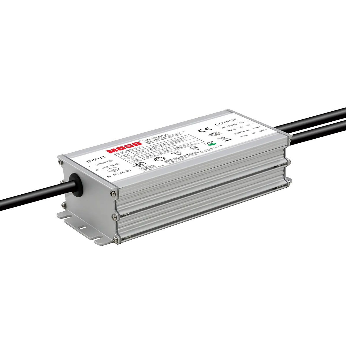 Pilote LED polyvalent avec entrée 90–305 Vca, gradation 3 en 1, indice d'étanchéité IP67, protection contre les surtensions et garantie de 5 ans, parfait pour les solutions d'éclairage extérieur et industriel.